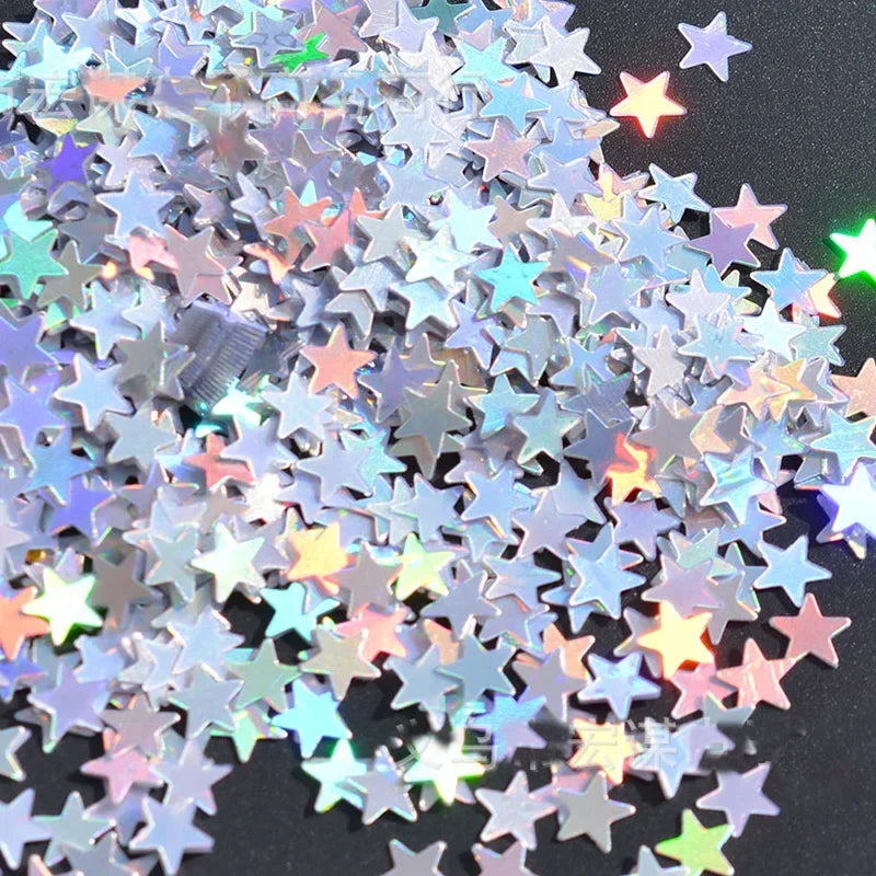 Item Type:15 g/lot Iridescent gold silver star confetti