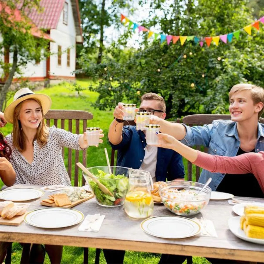 175Pcs Disposable Gold Dinnerware Set Gold Rim Plastic Plates Cups Fork Spoon Knife Paper Napkins for Party Wedding Graduation