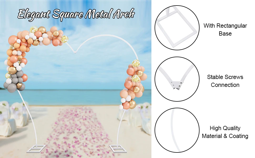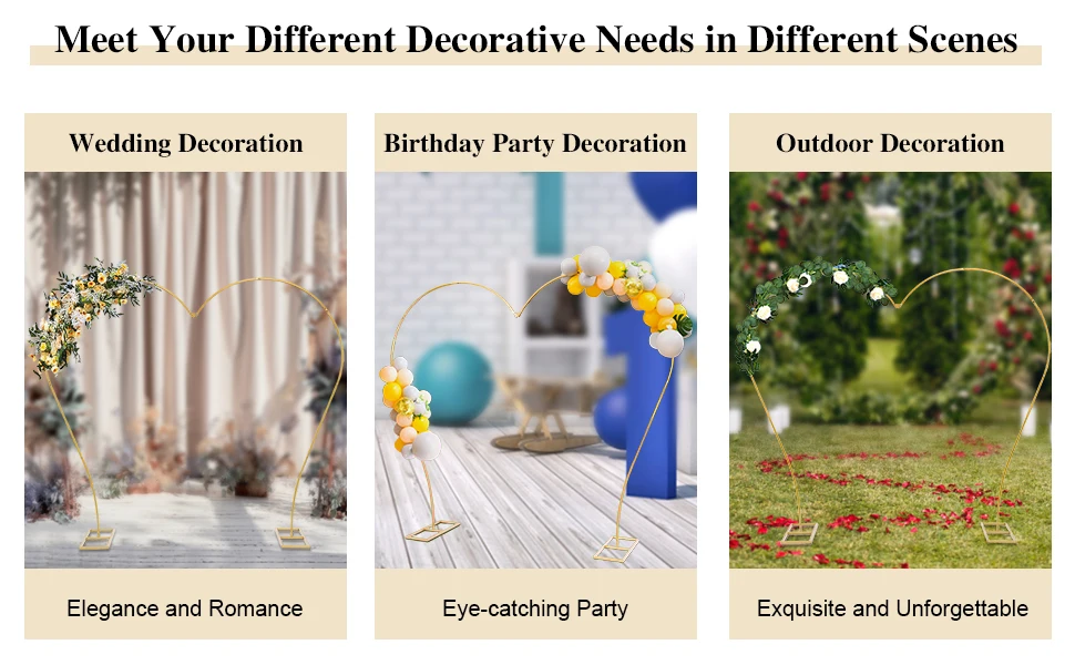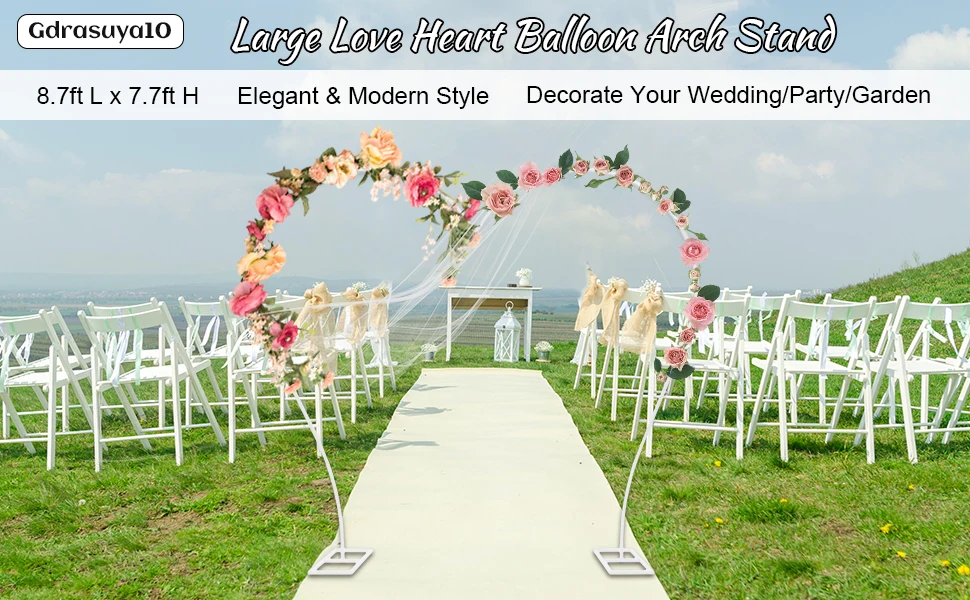 Exquisite Backdrop: This enlarged gold/white heart-shaped arch(8.7*7.7ft) adds a romantic and grand backdrop to a wedding or party while allowing people to pass freely.