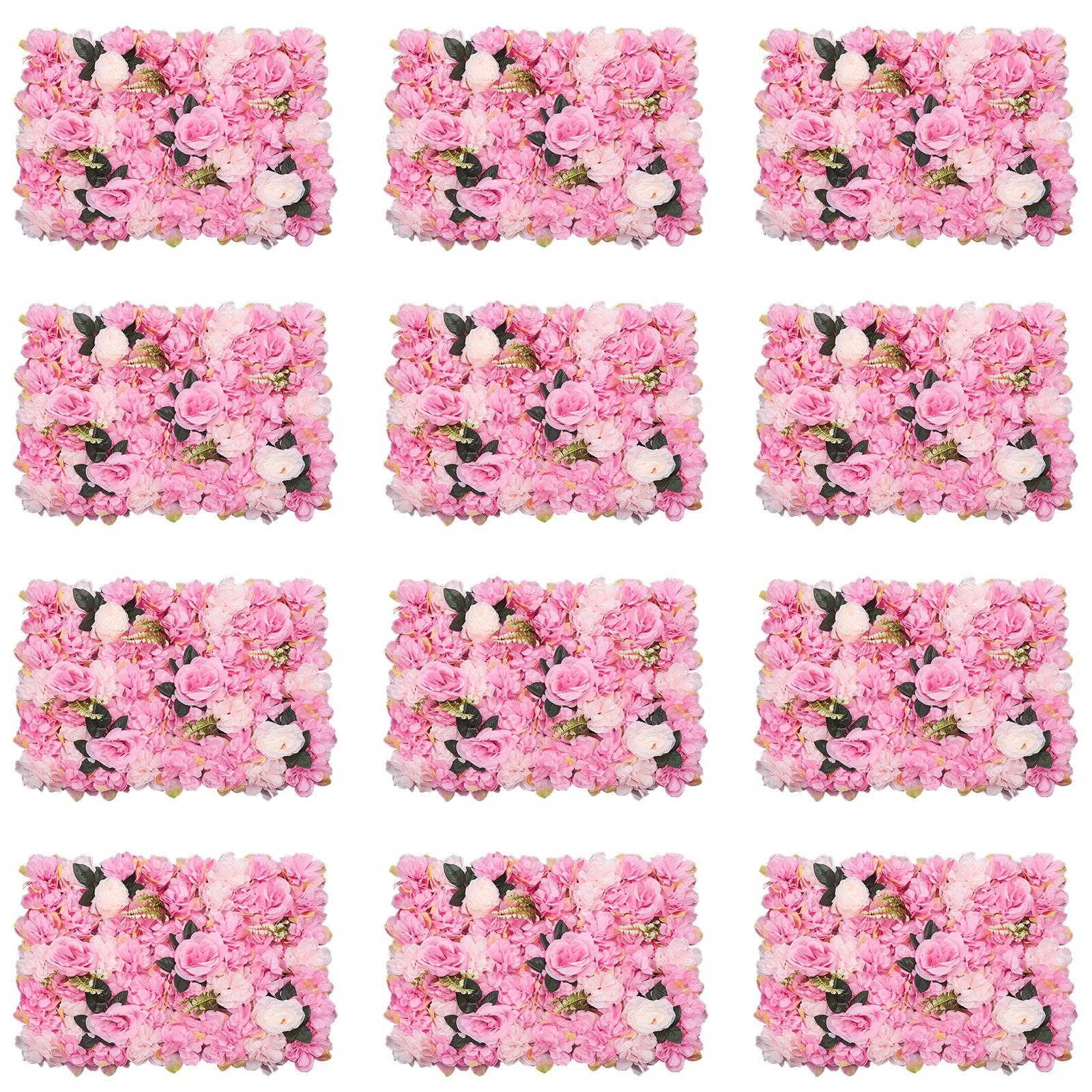 23.62x15.74 inch 12-Piece Flower Plant Wall Deep-Pink Dahlia Roses For Wedding Party Background Decoration