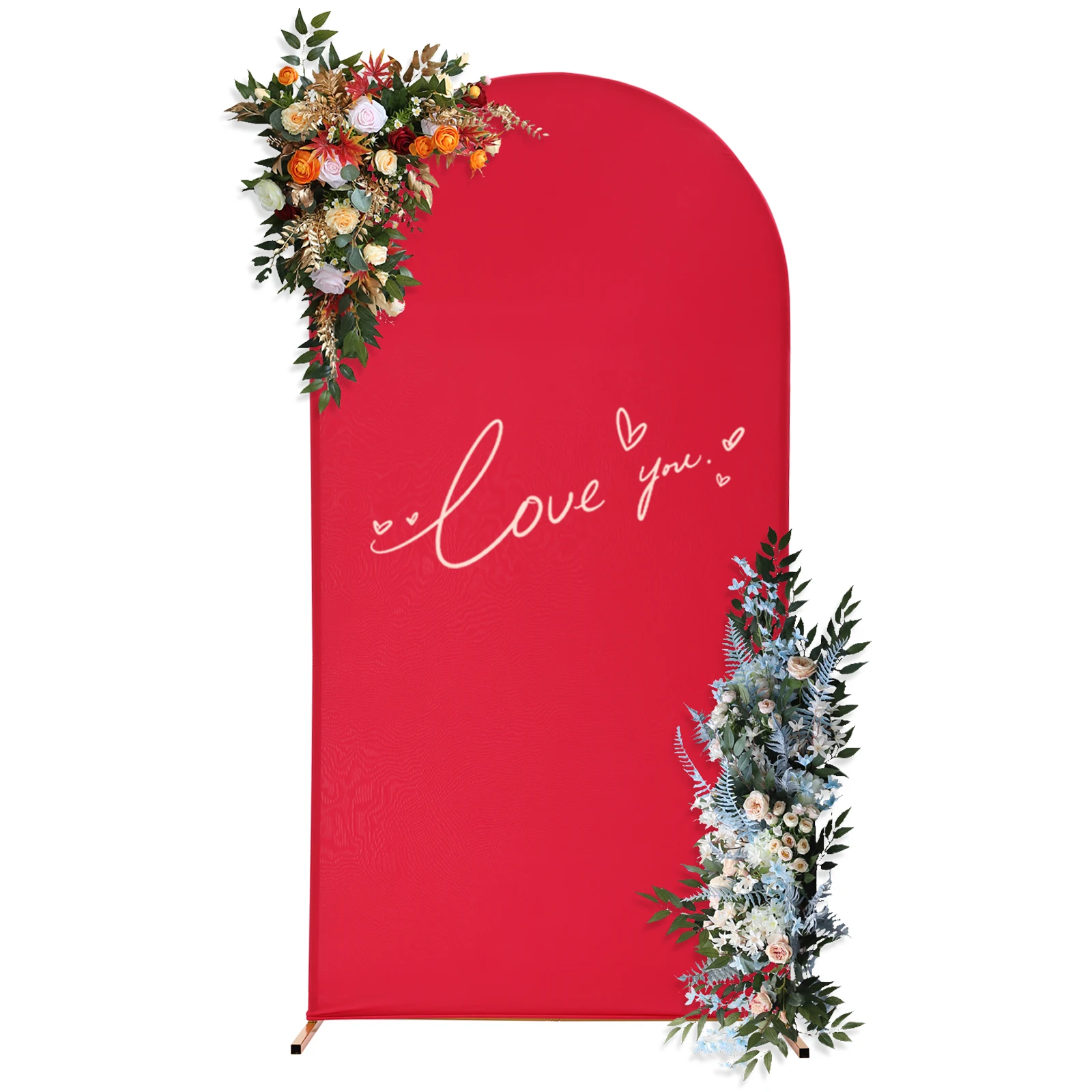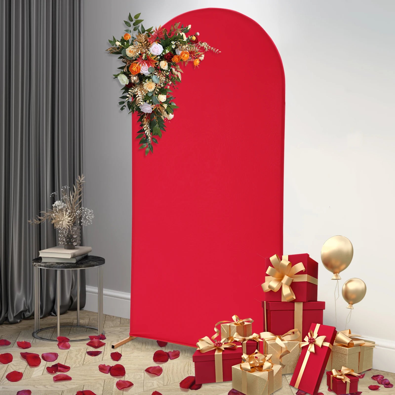 2m Wedding Arch Frame Kit | 100x200cm Elastic Rose Red Cover, Balloon Backdrop Stand