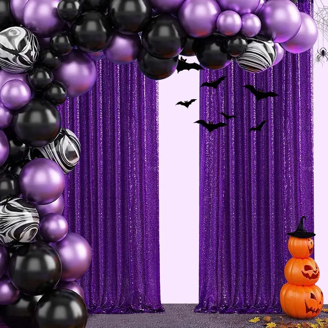 Purple Sequin Backdrop Curtains Glitter Drapes 6 Pcs-2ftx8ft for Wedding Birthday Party Decorations Sparkly Photography Backgrou