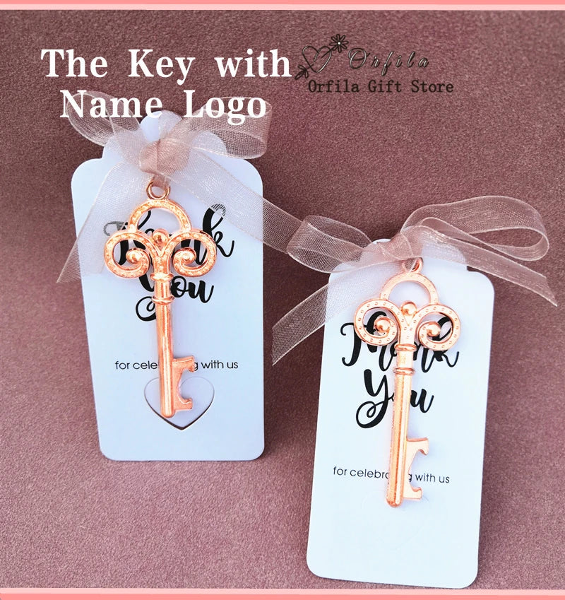 Wedding Gifts For Guests Souvenirs Party Gifts Copper Color Skeleton Key Beer Bottle Opener with Personalized Name Sticker Card